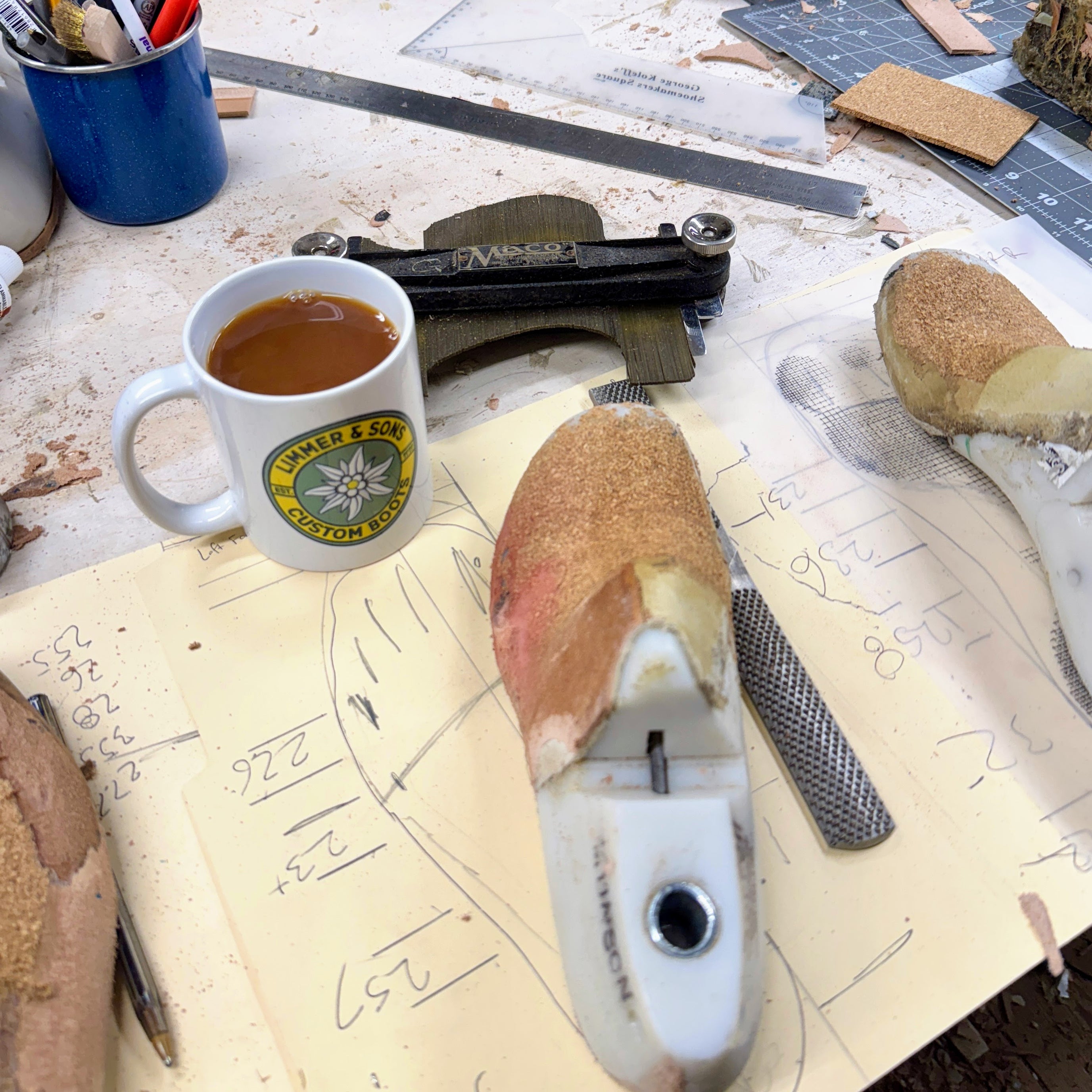During your visit to the shop we will take detailed measurements and tracings of your feet and take notes on specific issues you have. While you are here we will discuss options and show you the shop and boot build process.